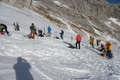 Včeraj nas se je druščina 8-ih, željnih sonca in snega odpravila na Kanin. Proga v dolino je bila ponovno zaprta kar so nekateri izkoristili za vzpon po njej. Mi smo se z gondolo zapeljali do Gilbertija. Kratek spust in smo se vzpenjali čez Prevalo do Prestreljniške škrbine. Kože so šle dol in smo šli pogldat pod Okno. Ocenili smo da je premalo snega in se spustili proti postaji C, kar se je hitro končalo. Na 2030 m bila točka obračanja zaradi ’stein kontaktov’. Kože nazaj na smuči in vzpon na škrbino. Smučanje do prevale OK (suhi presmučani sneg), s Prevale po progi dol. Ponovno kože na smuči in vzpon na sedlo Bila peč. Prečka zelo trda, srednji del skorja, ki v glavnem drži, zgornjih 20 m ojužen pršič. Nazaj do Gilbertija in ob 15.45h po zaprti, skozi zelo trdi progi v dolino (brez srečanja z organi reda). Ocena je za TS del ture.