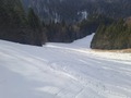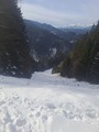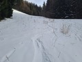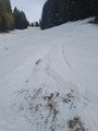 Razmere:Z izhodišča na Zatrniku sem se povzpel proti Hotunjskemu vrhu. Snežna odeja je precej skopa in neenakomerna, vendar še vedno dovolj, da se da z nekaj previdnosti prismučati do spodnjega dela. Na prisojnih mestih sneg že prekinjajo zaplate trave.