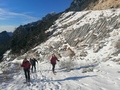 V štirih iz Šempetra. V Volčah poberemo prijatelja z idrijskega. Do Bovca in nato proti postaji B in še malo naprej do nv.1120m - odcep poti za postajo C. Tu parkiramo, smučke in čevlje na nahrbtnike, malo pred osmo začnemo s hojo po cesti proti postaji. Smučke nesemo do nv.1420m, kjer je zadosti snega, da si jih nadenemo na noge. Nadaljujemo po cesti proti postaji in nato naprej po smučišču do postaje D. Sneg je mehak, snežna odeja ni ravno velika - le okrog ~10-20cm. Od D postaje se vzpnemo še na Sedlo (nv2287m), kjer je že precej turnih smučarjev, večina je prišla z italijanske strani. Uživamo v lepem vremenu in pogledih proti J - do morja in proti S - Montaž, Lopa, Konjske police, Hudi Vršič.... Spustimo se v smeri vzpona, smuka je sicer odlična, vendar zaradi majhne količine snega smučamo previdno, a vseeno večkrat pošteno zahrešči pod smučki. Smučamo nazaj do točke kjer smo si zjutraj smučke nadeli. Zopet smučke na nahrbtnike in v peš do kombija. Še v Bovec na kavo, nato pa proti domu. Še se vrnemo, le še malo snega mora zapasti.