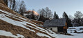 V petek se nama ni mudilo. Počasi sva jo ubirala v strmino nad kočo na Vojah do planine Grintovica. Šele tik pred planino sva stopila na sneg. Torej je snežna odeja na 1200 metrih. Ob ognju in na njem pripravljajoči večerji sva skovala jutrišnji načrt.