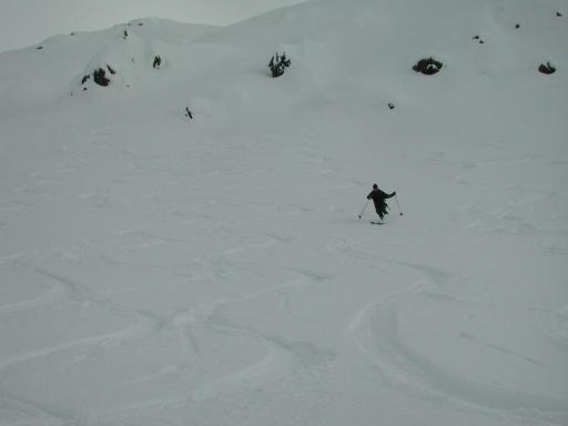 smučarjev, sva se vzpela po dolini Rosstal in nato po širokem in dolgem pobočju na vrh (slabe 3 ure). Razmere za smučanje so bile enako fantastične