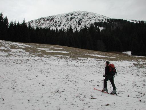Košuta je kazala rebra, Golica in okoliški vrhovi pa so od daleč izgledali lepo zasneženi. Pa smo se odločili za Hruški vrh. Ampak od blizu