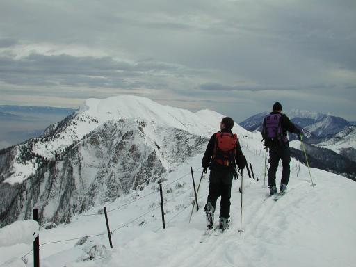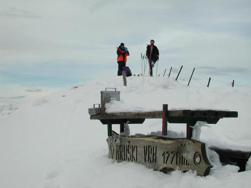 kar peš. Na Hruški planini pa je snega dovolj. Hoja na vrh je bila prav prijetna. Smučanje navzdol še bolj. V samoti Hruškega vrha smo opazovali