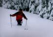 sva nataknila smuči na noge, je bila snežna odeje že spoštljive višine. Med vzpenjanjem na hrib sva si ogledovala, kje bi bilo najbolje smučati, saj