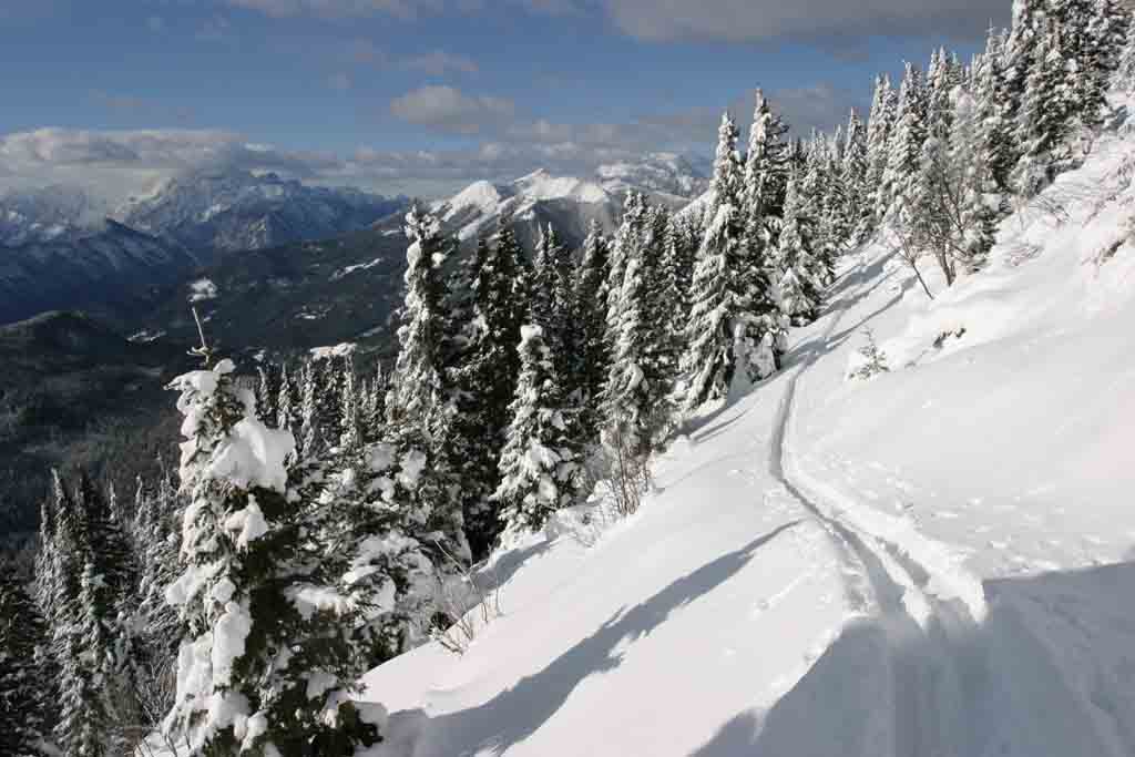 Slatna ( Andrej, 10.01.2004)Z Robertom sva jo kako uro prezgodaj mahnila proti Slatni. Avto sva najprej nameravala pustiti pri Domu na Pristavi, vendar naju je žaneslo" malo predaleč, a sva se že znašla v globoko spluženem koridorju, ki ni dopuščal parkiranja ob cesti. Zato sva pustila avto na zadnjem ovinku pod rampo ceste, ki vodi na Pusti Rovt. Cesta je bila odlično splužena do rampe, naprej je nek orjaški traktor naredil široke kolesnice do Pustega Rovta, kar je olašalo napredovanje. Pot sva začela še v snežnem metežu v temi, a je sneženje do svita že ponehalo. Medtem se je tudi zdanilo in na Pustem Rovtu sva že lahko opazovala zahajanje lune. Od tu naprej sva tudi začela gaziti smučino po približno 10-20cm novega suhega snega. Razmere do sedla in naprej po ravnem delu poti do Bevske planine so bile več kot idilične. Mestoma je pihal mrzel severnik. Od Bevske planine proti vrhu sva že dočakala sonce. Na vrhu začuda skoraj nič ni pihalo. Razgled je bil čudovit. Pogled nazaj proti smeri vzpona je najavljal še tri turne smučarje. Hitro sva snela pse in se predala vijuganju po svežem pršiču. Odkrito povedano, bil je pravi pršič, čeprav sem zaradi močnega vetra pričakoval nekaj skorje. Od Bevske planine po ravnem delu so medtem že drugi turni smučarji za nama dobro utrdili smučino, tako da poganjanje skoraj ni bilo potrebno in je šlo kar samo naprej. Malo pred koncem ravnine sem srečal dva planinca brez smuči, ki sta "uničila" smučino in od tam naprej smuči niso več tako lepo tekle, ker se je začelo vdirati. Zato sem se odločil odsmučati direktno dol po jasi, ki te vodi direktno proti Pustemu rovtu. To je bil vrhunec smuke po novozapadlem pršiču, saj sem ga z lahkoto rezal do kolen globoko. Poezija! Le senčne strani se je bilo treba držati, saj je prisojni del jase sonce že začelo predelovati. Sledilo je 5 minut smuke skozi gozd, kjer je bila zoprna predirajoča skorja. Travnik nad cesto, ki vodi skozi Pusti rovt pa je bil prekrit s skorjo, ki se ni predirala. Od tu naprej še nekaj minut po cesti in že sva bila pri avtu. Vreme preko sobote in nedelje (sonce, veter) je verjetno precej spremenilo razmere, tako da verjetno pravega pršiča ni več. Kljub temu je pokrajina, ki je tako lepo zalita s snegom, resnično pravljična in zato vsekakor priporočam turo.