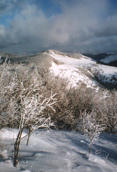 uri. Ko sva si med vzpenjanjem ogledovala hribe na primorski strani, mi je Marko vztrajno razlagal, kateri hrib v daljavi je Ojstriž. Tam smo smučali