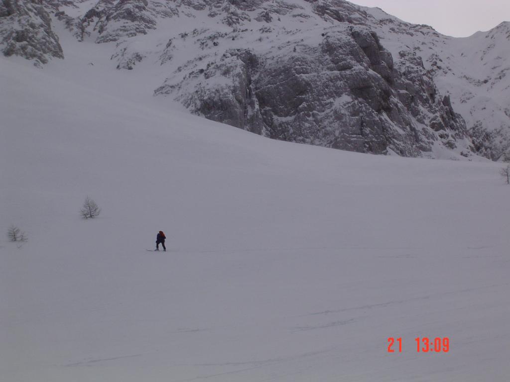 najboljše. Nato me je pogovor s Strelo prepričal v poskus po plazu kljub stiski s časom. Videti je bilo lepo. Že po nekaj metrih so mi odpadli psi s