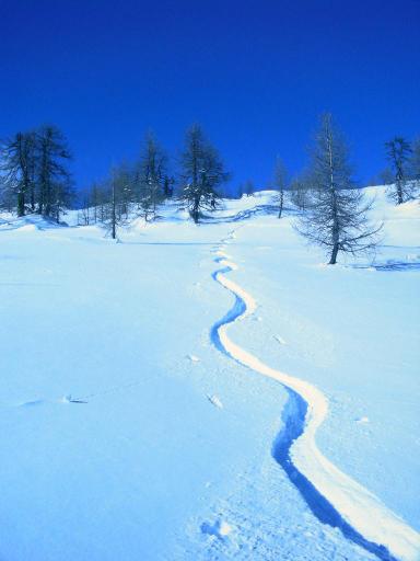 šli. Na Lipanco, na Mrežce. Do Lipance je gaz narejena, naprej je Mare zgazil avtocesto. Snega je povsem dovolj. Na strehi je spihano in kložasto,