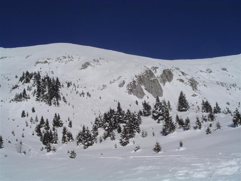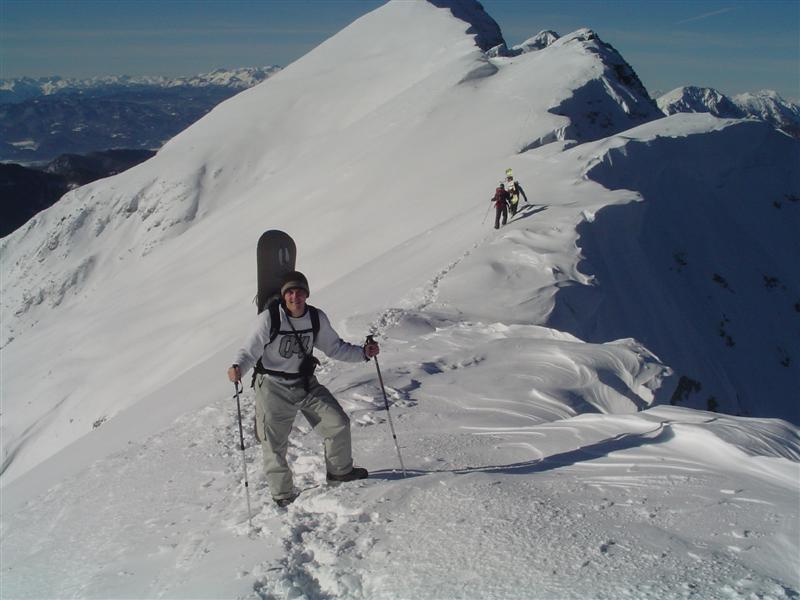 pomrzjen, drugace pa skoz lepa gaza. Snega je na vrhu okoli 1.5m. Utujeni smo naredili kratek postanek, nato pa spust po grebenu do avta. V spodjem