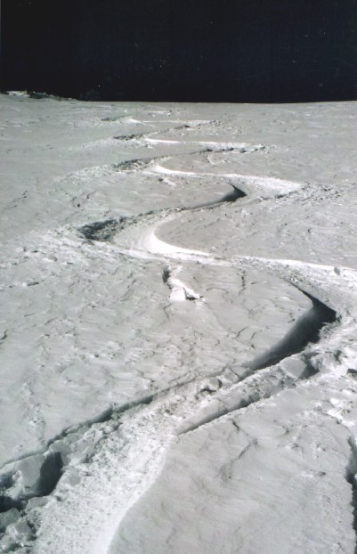 in celotno pobočje je bilo še deviško. Začetek po skorji, ki je držala, nadaljevanje pa je bilo božansko po mehkem suhem snegu. Izognil sem se zelo
