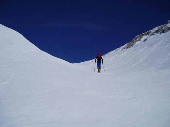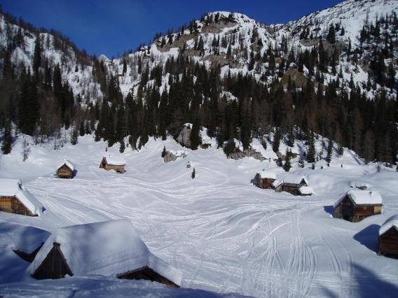 dirke, saj je planina prevožena po dolgem in počez. Naprej sva nadaljevala mimo Kovačičeve glave v dolino med Prvim Voglom in Slatno. Serenači naj ne bodo v nahrbtniku, ampak naj bodo na smučeh. Sneg