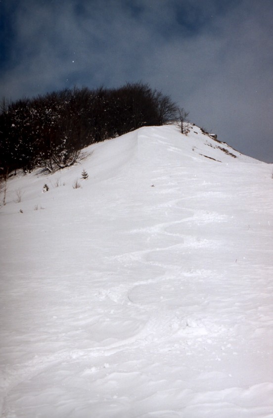 Greben nad Lohačo (Jože, 03.03.2004)Med vasema Lohača in Studeno poteka greben s tremi vrhovi (Lipovec, Špilnik, Sv.Lovrenc) ki so vsi visoki malo preko 1000m. Vsak od njih je primeren kot samostojen cilj, ture pa so razmeroma kratke. Danes sem se odločil, da jih povežem v celoto. Iz vasi Lohača najprej na Lipovec z vzhodne strani, ki je že skoraj brez snega, saj ga je spihalo. Na vrhu sem odlepil pse in odsmučal po dobro zasneženi zahodni strani. Prijetno vijuganje, ravno prav za ogrevanje. Ko se je svet izravnal, sem spet nalepil pse in po pobočjih Špilnika krenil v smeri proti Sv.Lovrencu. Pobočja Špilnika so bila videti božanska, da o snegu ne govorim, ampak nisem podlegel skušnjavi, saj smo vendarle v postnem času in sem junaško nadaljeval pot. Končno sem prišel do mesta, kjer se je odprl pogled na dostop do Sv.Lovrenca. Na moje veliko veselje se je proti dnu Sv.Lovrenca spuščala prekrasna enakomerna strmina, ki se je spodaj sicer zaključevala z grmovjem, vendar pa so bili vidni prehodi. Smučanje na tej strmini je bilo za bogove. Ko sem se spodaj izvil iz grmovja, sem spet nalepil pse in krenil po vzhodni strani Sv.Lovrenca proti vrhu. Vmes sem seveda ponosno ogledoval vijuge, ki so ostale zarisane daleč na drugem bregu. Za opis smučanja s Sv.Lovrenca bi bilo potrebno spet uporabiti kup presežnikov, lahko pa zadevo poenostavim in rečem, da je bilo enostavno noro. Ko sem bil v vznožju hriba, je potekla tretja ura ture, vendar je bilo potrebno priti še do avta. Po zasneženih travnikih ob cesti sem zato hodil še uro in petnajst minut. Turo zelo priporočam, ampak za božjo voljo, uporabite dva avta!