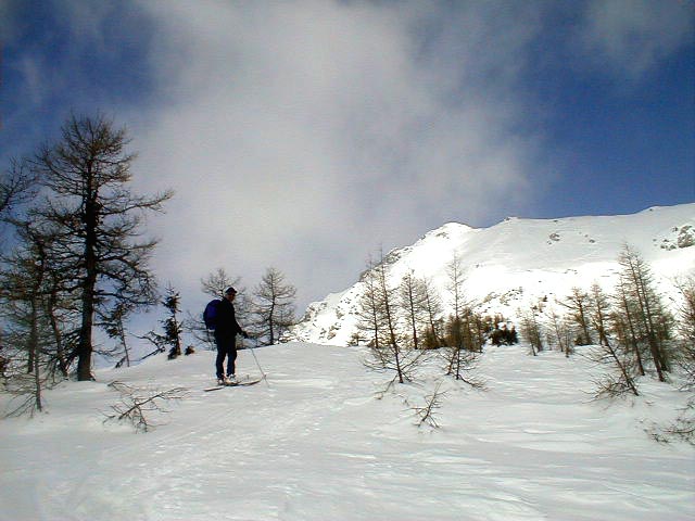 Gaz proti vrhu je narejena vendar bolj za pesce kakor za smucarje. Da se. Dopoldan se je silil soncek in optimizem je bil na visini. Kmalu, prav