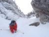 plazovino pod grapo. Po plazovini se je lepo dalo cik cak. Samo grapo sva pregazila, večinoma preko kolen. Dolga je cca 250 m subjektivna ocena III+,