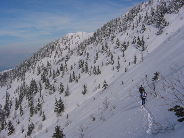 do odprtega strmega pobočja nad spodnjim Pustim rovtom je bila zaradi pikanja smuči precej zoprna, predvsem pa naporna. Na omenjeni strmini nad