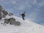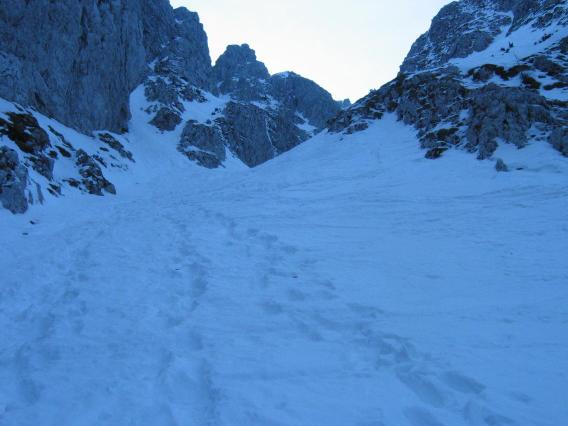 pregažene, najbolj seveda Kramarca. Danes se je na tem koncu kar trlo takšnih in drugačnih planincev. Smuka do cca polovice žrela odlična, predelano