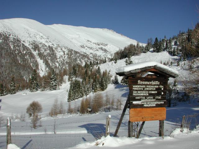 desno navzgor (kažipot Maltaberg) po vse bolj zasneženi cesti