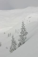 globokem snegu, ki nas je po premisleku odvrnil od samega vrha Kala. Količine so ogromne, vrh lahko počaka, Ortovoxe smo s seboj hvala bogu nosili le