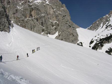 zmehčali sneg, vendar hoja ni bila težavna, ker je nadelanih že precej špur. Smuka je bila ne glede na turnosmučarsko znanje ali neznanje