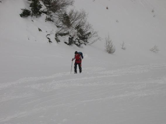 pa sva izbirala čimbolj napihane predele in uživala v cca 30 cm že malce mokrega, a še vedno uživaškega pršiča. Plazovini, ki sicer zaseda dobršen