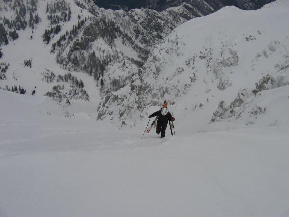 kvalitetna, po dolgem času za spremembo ob normalni vidljivosti. Grapa je sicer še vedno razrita, a jo novozapadli sneg odlično amortizira, na plazu