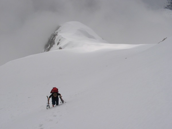 priporočljiva uporaba derez in cepina, smučanje čeznjo pa ni bilo problematično. Še največ moči nam je pobrala zaključna strmina z debelo vršno