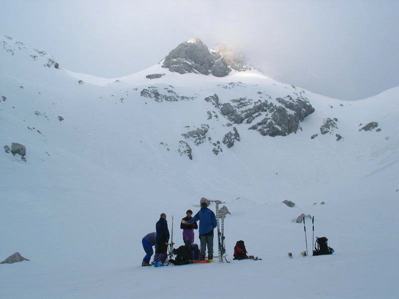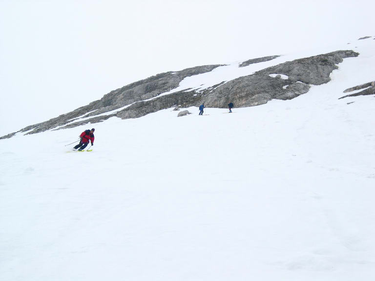 zadnjega poročila razmere poslabšale. Spodaj je že ob 10 uri gnilec, ki na srečo ni prav globok. Okoli 1500m predirajoča skorja. Nad 2000m je sneg na