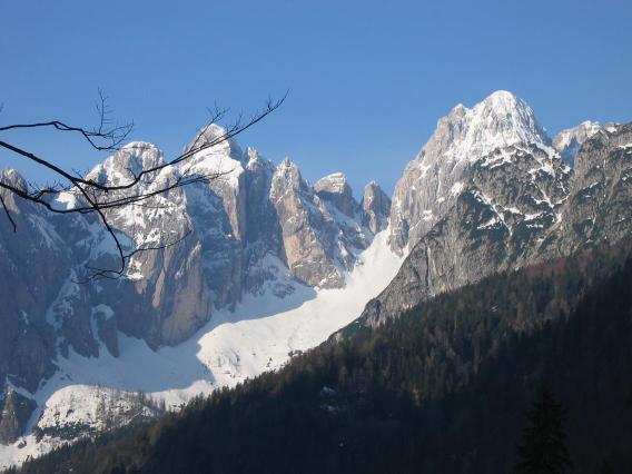 pred poldnevom temu primerno južen, a povsem v redu smučljiv. Mulatjeri smo se ognili po snežišču na desni strani, po katerem smo se pridričali do