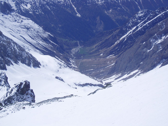tanko nemotečo vetrno kložo,na ledeniku Pasterca ni novega snega in je sneg že lepo osrenjen. Kože bile potrebne v zgornjem delu in spodnjem delu.