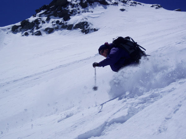 potrebno biti zgoden, nevarnost plazov kasneje zaradi močne pripeke. Mi smo uživali v hladnem, delno vetrovnem vremenu. Zgornji del 40cm pršiča s