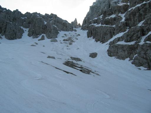 1400 m). V zgornjem delu sneg še nepredelan, spodaj pa veseli srenec. Če imate še veselje do smučanja, se vam obeta dobrih 800 višinskih metrov