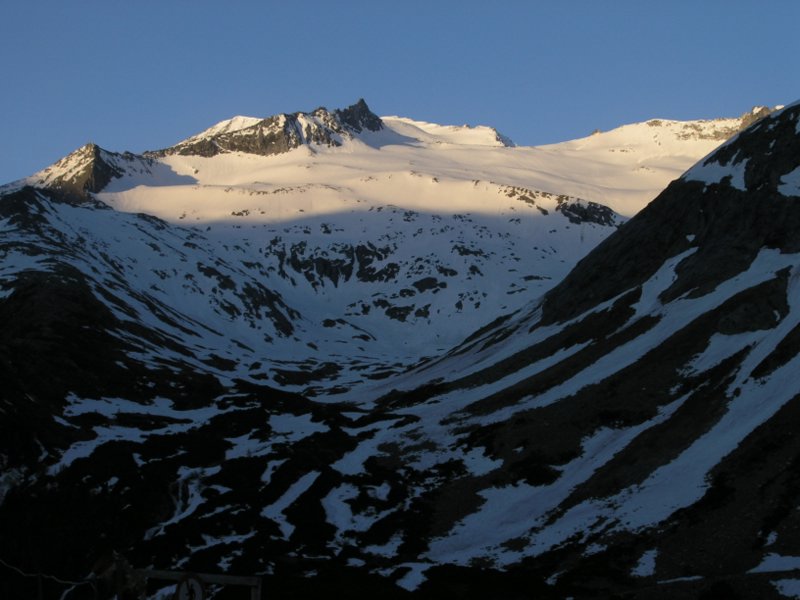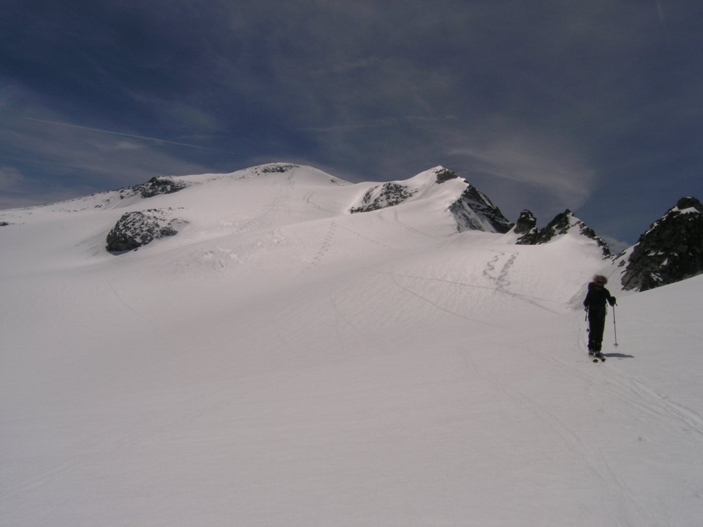 lo le še slabe pol ure pešačenja. Snega je tudi v tem delu Alp veliko, Kolnbrein Spitze je še popolnoma zalit (smuka do avta!) in zato nikar še ne