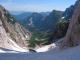 zato sem se v spodnjem delu sem se držal desno (pod Travnik). Toda tudi tam so na snežišču številni kamni, ki jih od daleč niti videl nisem. Resda