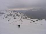 desetih dopoldne končati ture sem šel še na greben Margrotzen kopfa in izkoristil 600 višinskih metrov fantastičnega snežnega jezika (100 m ~50°).