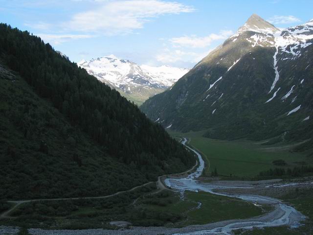Innergschloess. Naprej z taxi-jem (4.50 EUR po osebi), do višine 1700m. Nadaljevali smo naprej mimo Alte Prager Huette do Neue Prager Huette