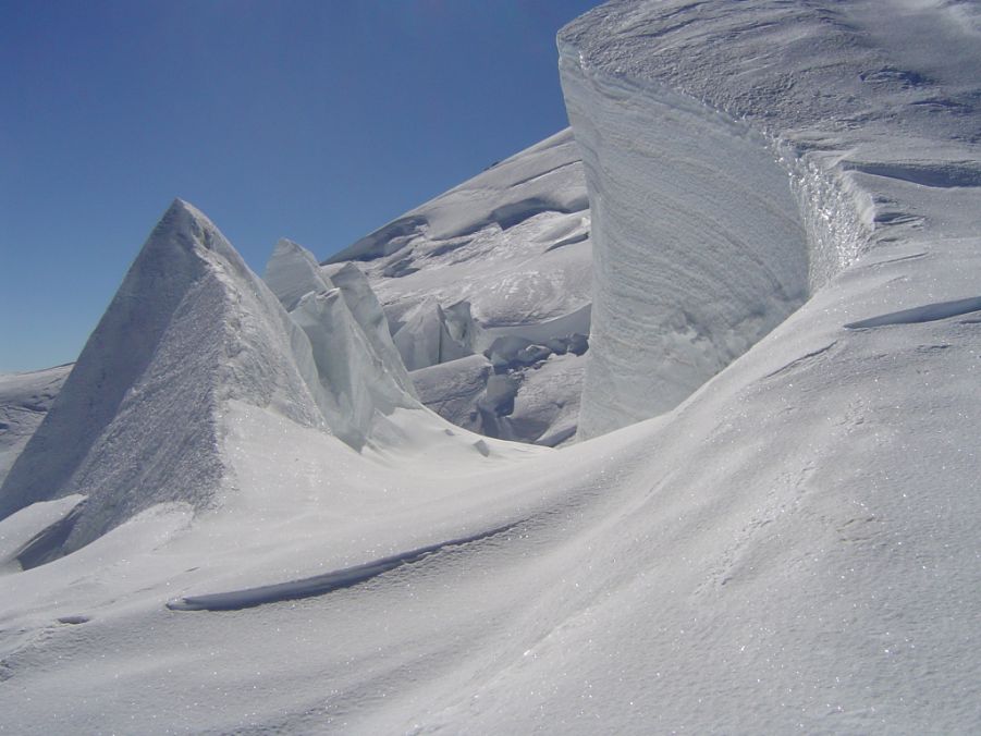 noči na 3800, smo se zgodaj zjutraj začeli spuščati proti koči Tate Rousse. Smučarija je spet mog