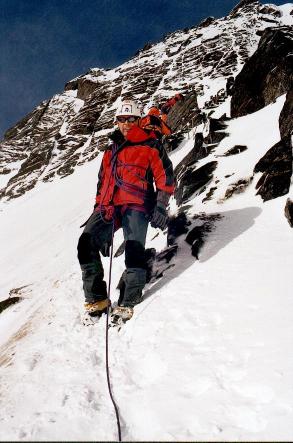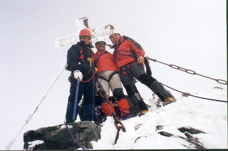 sledili Češkima navezama ter navezi Francozov. Na vrhu smo bili ob 10 uri. V megli, vetru in tudi v soncu smo se poslikali in sestopili za zelo