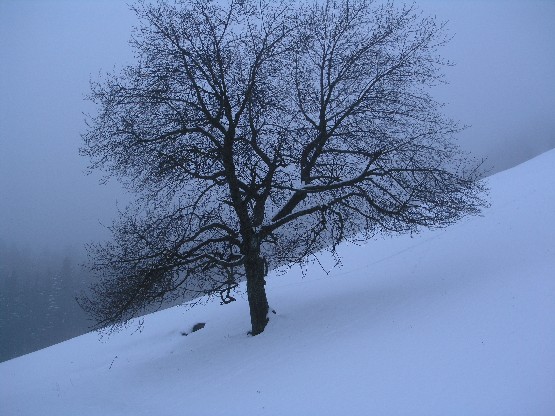Vreme je bilo megleno, ampak to ni pretirano motilo veselja ob dejstvu, da sem spet na smučeh. V zgornjem delu je bilo treba zaradi megle smučati