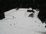 Sobotne izkušnje in poročila o potrganih strehah so nas usmerila v Tržič in Lom. Po kopni, v zgornjem delu pa ledeni cesti, smo se pripeljali prav do