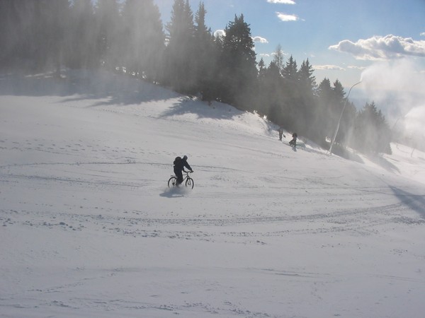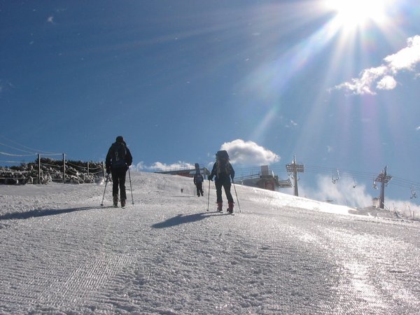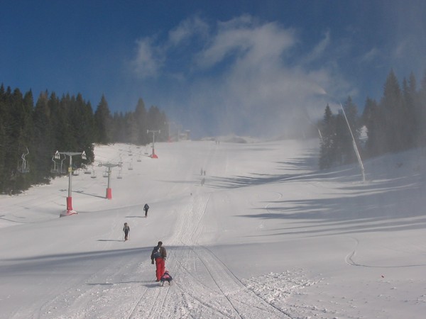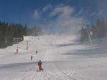 zgoraj, na "panoramski cesti". Krvavec je že prav lepo smučljiv (naslednjo soboto ga odprejo), trenutno je zasneženo smučišče do Tihe doline,