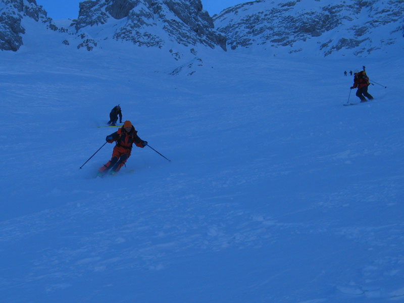 je bil nadvse nadležen, zato smo odsmučali kar z grebena.
