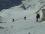 nevarna za zdrs. Do rame smo prišli v smeri poletne poti, pri rami pa smo odložili smuči ter se z derezami in cepini povzpeli na vrh. Smuka v
