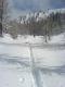 novega snega je bilo vedno manj, star pa moker in se je precej udiralo. Od lovske koče pa po cesti do avta. Čez cesto teče nekaj potokov in je