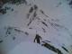 zasuta s snegom. Nato smo šli prek jezerksega sedla na Ledinski vrh. Sicer ni bilo tako trdo kot prejšnji dan v žrelu Storžiča, a je bila smuka