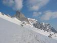 zapre. Ob 10:30 odsmučamo z grebenske rame nad Kotovim sedlom. Novozapadli sneg je le napol predelan, kljub oblačnemu vremenu je precej toplo, zato