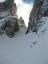 se je višala tudi višina novozapadlega snega, tako da sva jo tudi na smučeh kar pošteno gazila (no ja gazil je bol prijatelj). Samemu žlebu Prednje
