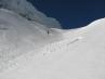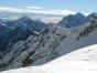 Bovec 0, Kredarica 0, vmes pa...pri spomeniku v Jezerski dolini tudi okoli 0 stopinj, sneg pomrznjen, vendar samo do 2. ali 3. ovinka, naprej pa rahlo ojužen sneg. Špure še nobene, nekaj deset metrov pred mano hodi en Italijan. Na Viški planini ga dohitim, naprej greva družno in izmenjaje, špuro potegneva do "velike skale" pod Škrbino. Razgledi lepi, sneg ojužen, vendar kot se kasneje izkaže kar lepo smučljiv, podlaga je pa tudi, tako, da nič ne škrta. nad 2000 metri je v senčnih legah znatna nevarnost kložastih plazov, na južnih pobočjih pa bodo v naslednjih dneh lahko nevarni plazovi južnega snega. Nekaj plazov je sicer že odletelo, vsekakor velja izbirati varne ture v tem vikendu, pa lep pozdrav.