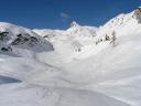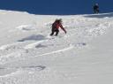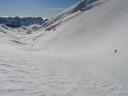 nekaj pršiča, večinoma pa trdo, pobočje, ki je nudilo čisto dostojno smuko, skorja se ni nikjer predirala. V dolini Za Kopico je pa postajal sneg
