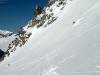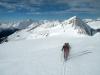 gozdu do strmin pod ledenikom. Sneg je z višino zmeraj bolj obetal. Po kratki pavzi na robu morena še doooolga prečka do vrha. Bilo nas je vse skupaj