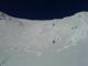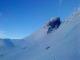 vzponom opazil, da je tam sneg precej skorjast in neenakomeren. Izbral sem dolinico, ki pada z vrha proti jugovzhodu. Hura, našel sem pršič !!!
